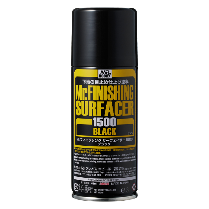 Mr. 피니싱 서페이서 1500 블랙은 부품 표면을 매끄럽게 마무리하며,